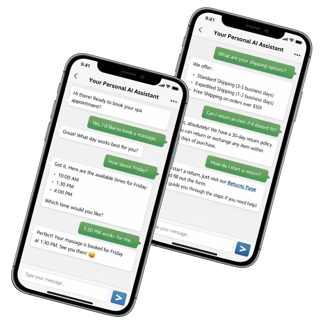 You can get your own AI chat agent that works around the clock to answer questions, capture leads, and guide visitors in real time so your business can continue even when you’re offline.